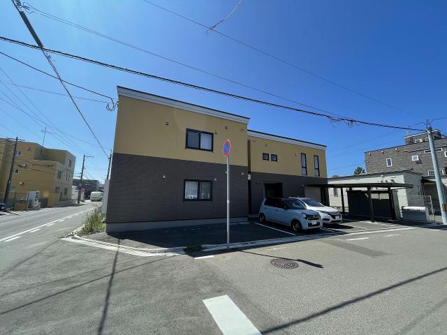 店舗前駐車場完備。産業道路沿い、函館北消防署前です。昭和タウンプラザ斜め向かい。