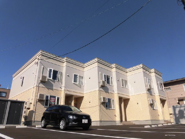店舗前駐車場完備。産業道路沿い、函館北消防署前です。昭和タウンプラザ斜め向かい。